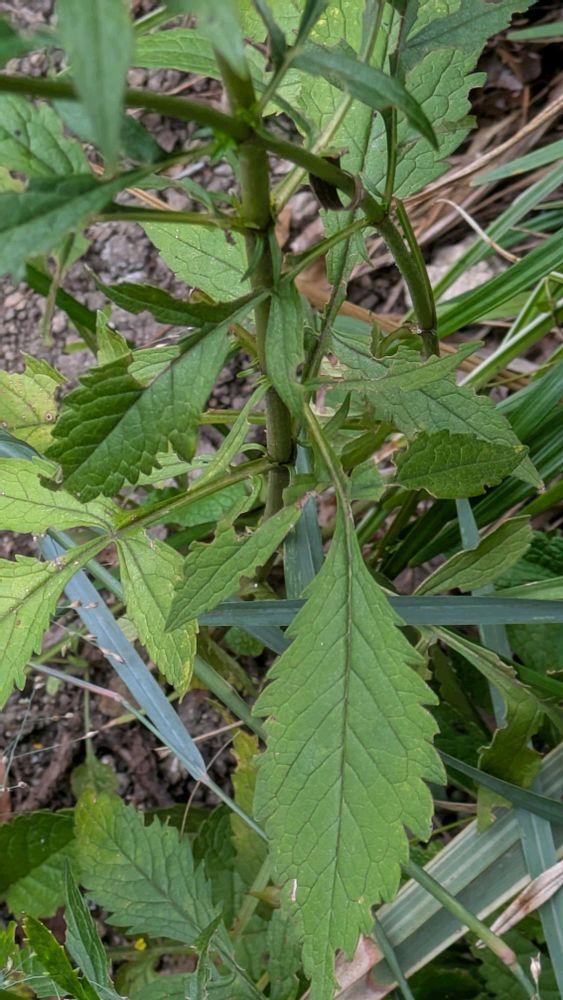 対生する茎葉は下にあるほど大きくて、粗くギザギザしている🟩