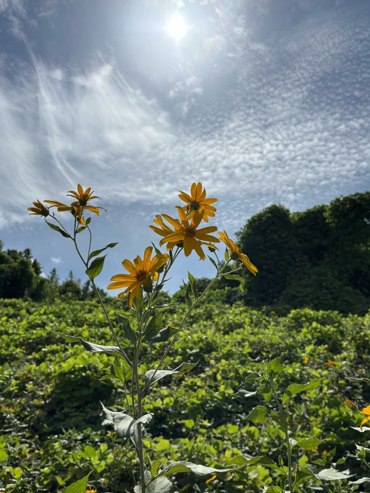 秋の青空が空高くて、菊芋のお花も誇らしげに見えます🤗