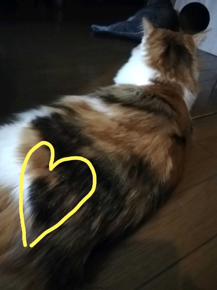 🐱にゃんこ🖤 動きだしたら 🖤でなくなったよ😅 寝たときだけみえるのか 隠れハートか❓🤔
