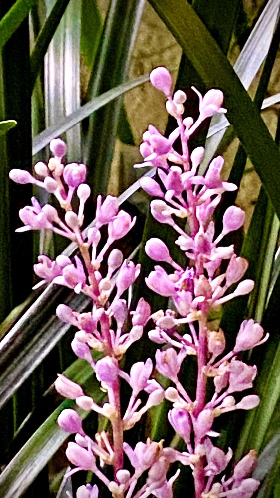 細長い葉はすーっと伸びてしなやか〜🌿花茎を立ち上げた先端に薄紫色の小さな花が連なるように咲きます💕🌿💜🌿今年はお花が少なめですが…楽しませて貰っています🪴😢