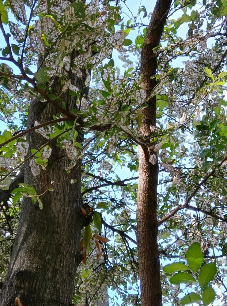 街路樹に一本だけ色が違う葉っぱみっけ👀