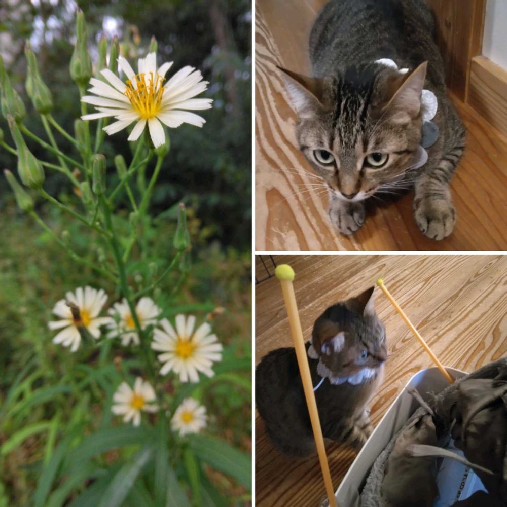 アキノノゲシとコブシの優しげな白いお花も、可憐なあられちゃん🐱にぴったりですね🤍