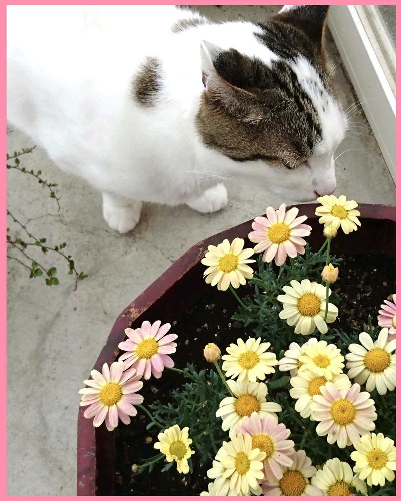 マーガレットの鉢をクンクンする過去picで参加させてください🤗