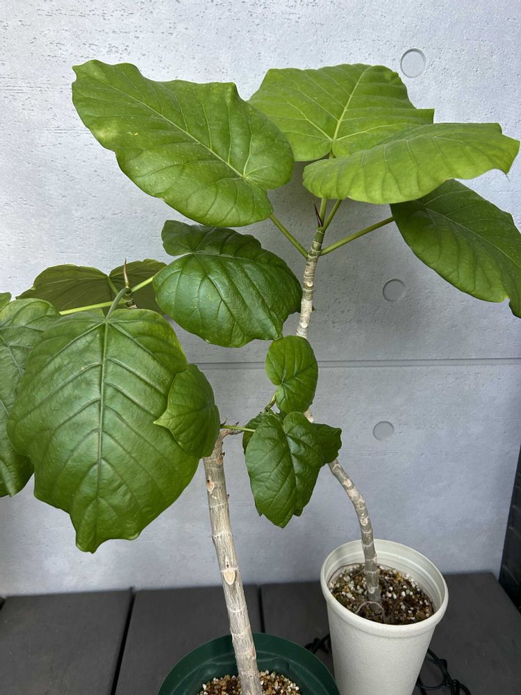 我が家の「フィカス ウンベラータ🌱」鉢付きで1つ100円で購入。昔はウンベラータがめっちゃ人気があって大きいのは、そこそこお値段が高かった💦100円なら買いでしょ!でも切り刻んで水挿ししたら直ぐに根っこは出るんですけどね😁