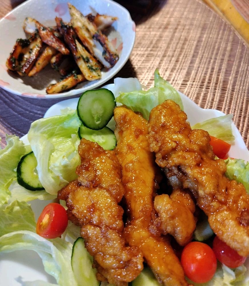 ③娘から届いた婿さん特製、ササミの檸檬煮🍋