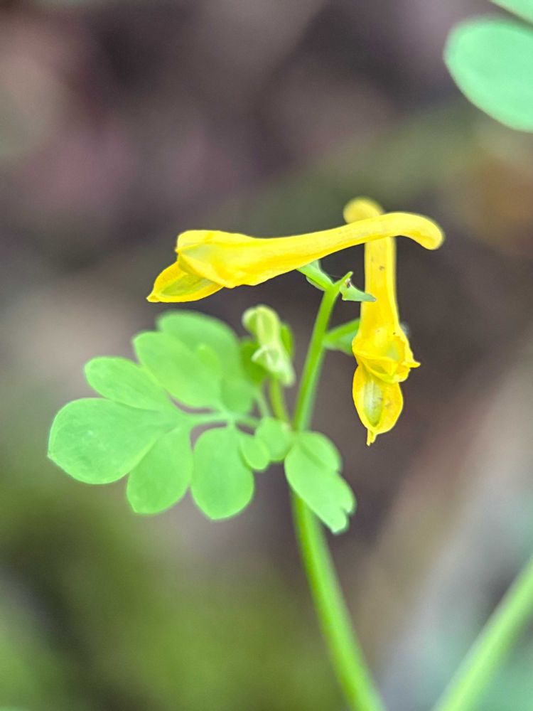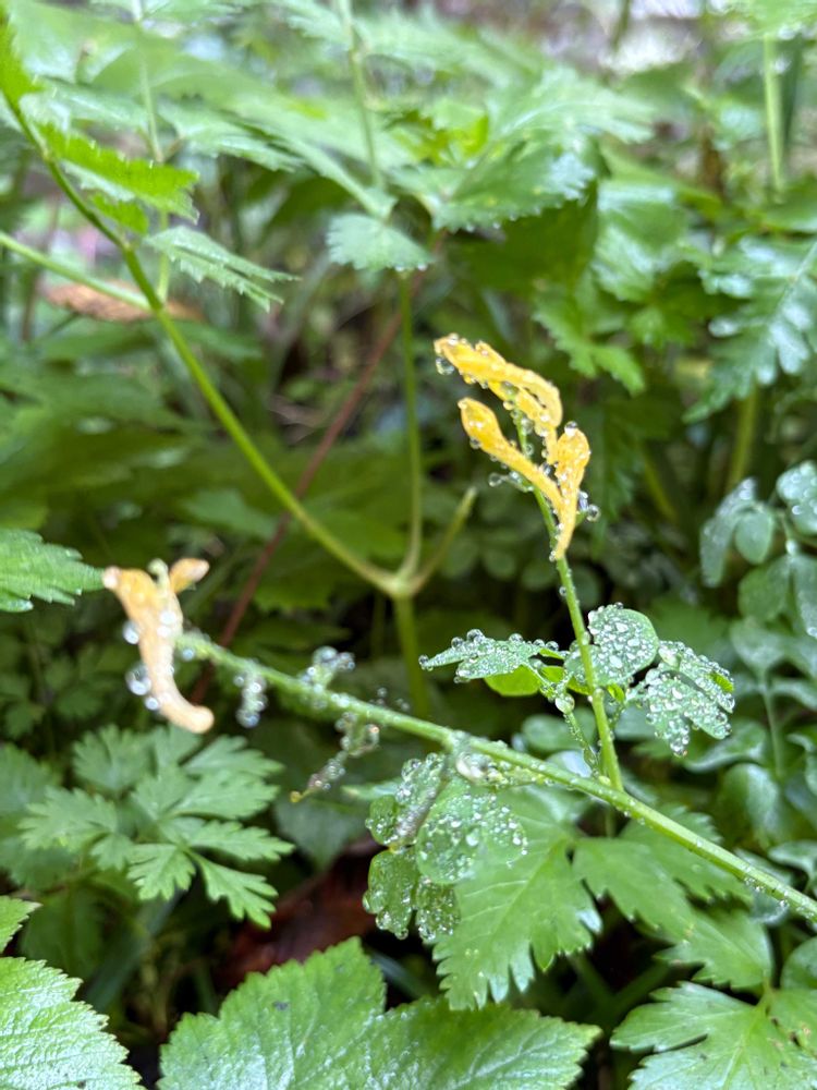 3枚目は滝のしぶきとマイナスイオンを受けるナガミノツルケマン🟡🟡🟡✨️💧💧💧