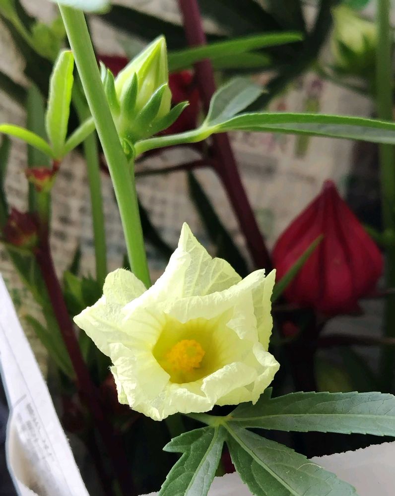 先日道の駅で売られていた切り花のローゼルを買って来たのですが、もう全部実になっていてお花は付いていなかったので、今年もお花が見られて嬉しかったです🤗💞