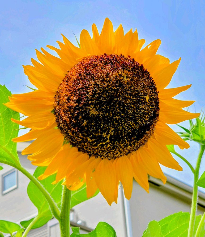 写真は、警察署の駐車場の向かい側に咲いていたひまわりです🌻‼️でかっ‼️🤗