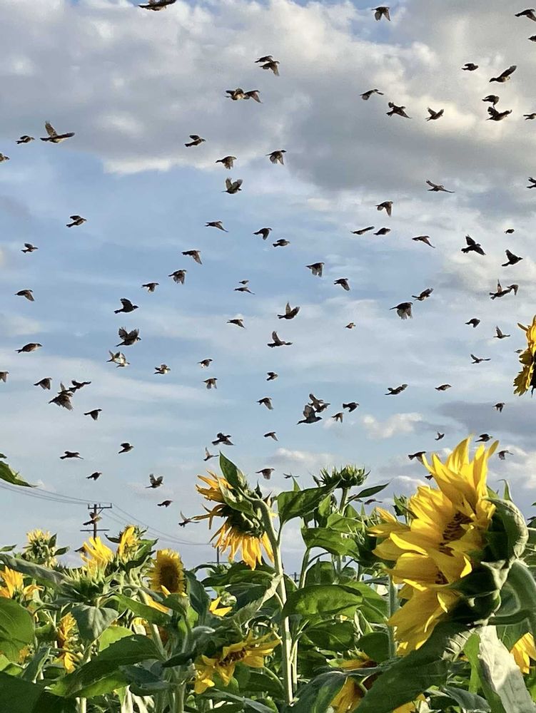 そうですね きっと‼️夕暮れ前にお空とひまわりさん たくさんの雀さんの光景♡見れて気持ちがさわやかになりました😊