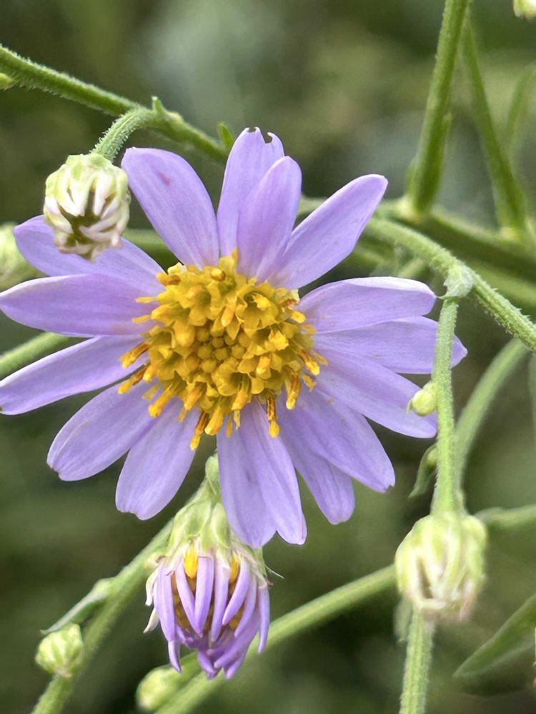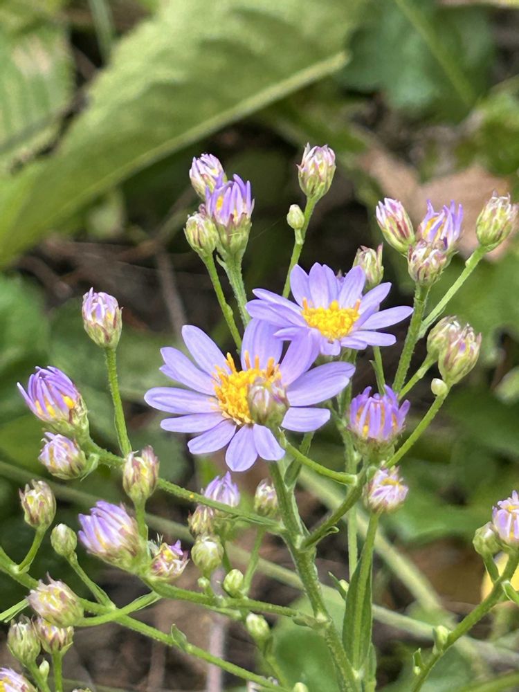 放置花壇でしおんが倒れて開花してますꉂꉂ(ᵔᗜᵔ◍)笑