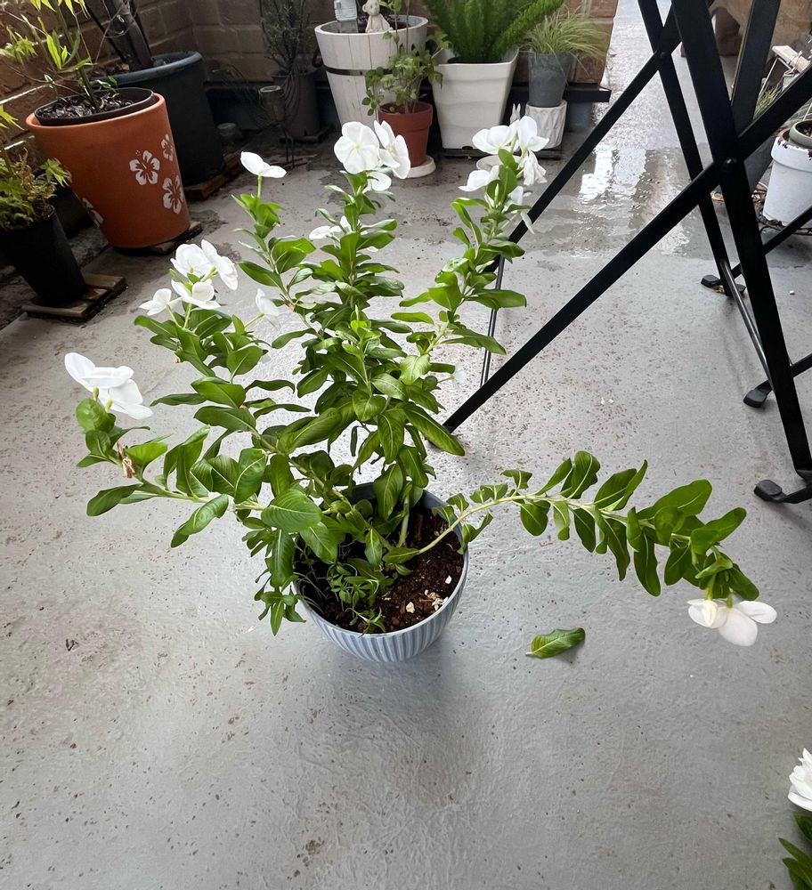 モッサモサになったニチニチソウ🤍今日の風でテーブルから落ち②になりました😭