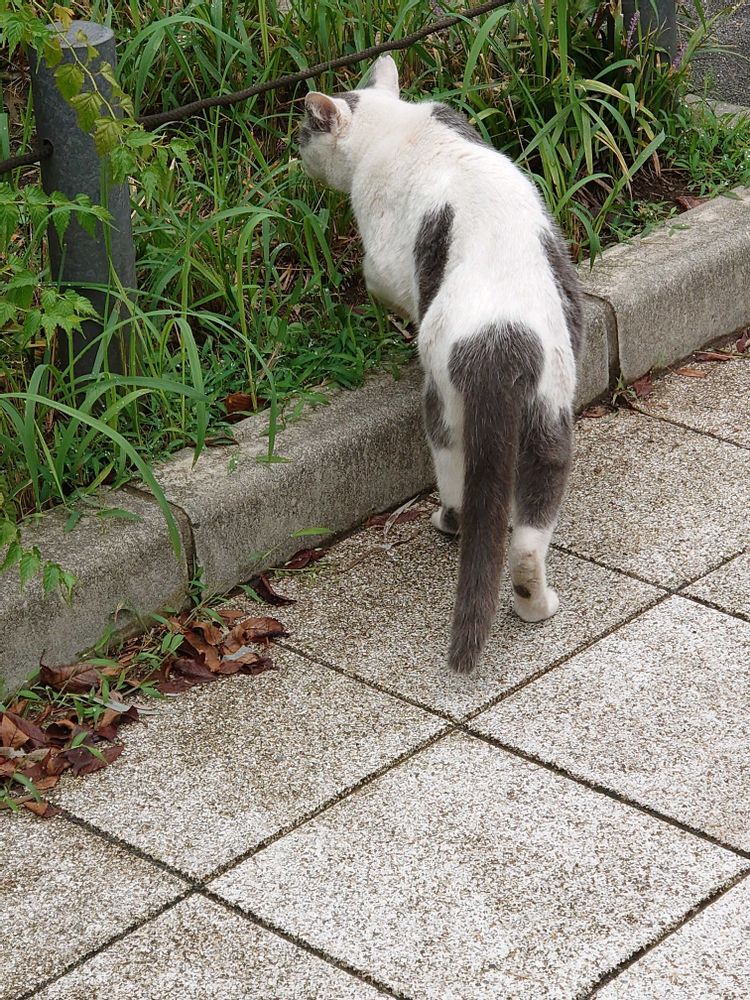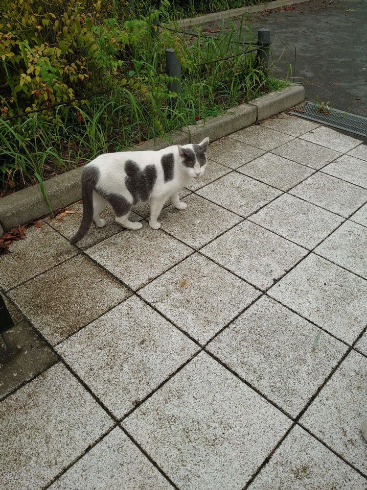 2️⃣ネコちゃんかゆっくり歩道を歩いていました🐾公園に入って行きます🐾そ〜っと近づいたら振り向いて😾なんだよーってお顔してた😅