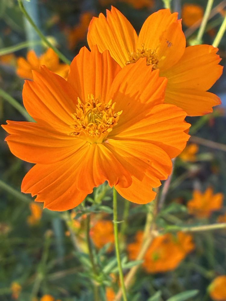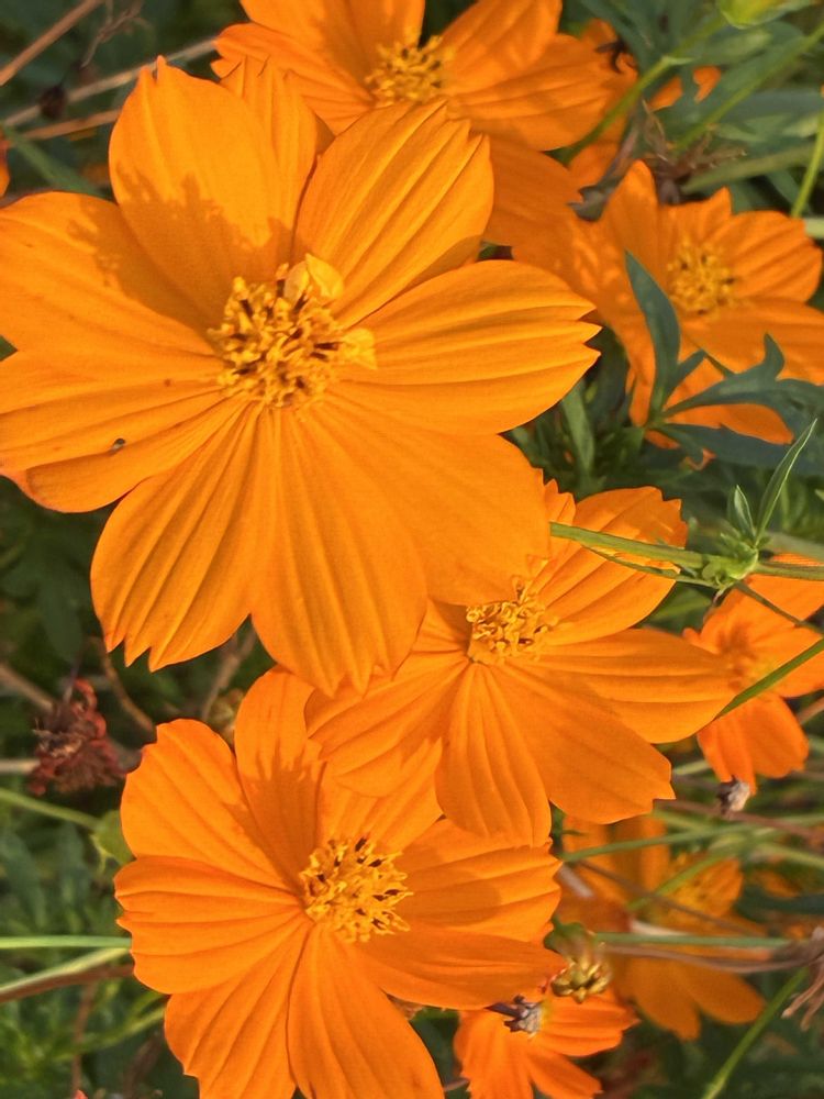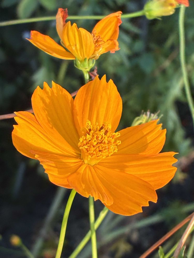 夕暮れ時、道路沿いの草村にて、オレンジ色の「キバナコスモス」をパチリ!📸🧡🌿😄🤗🌇