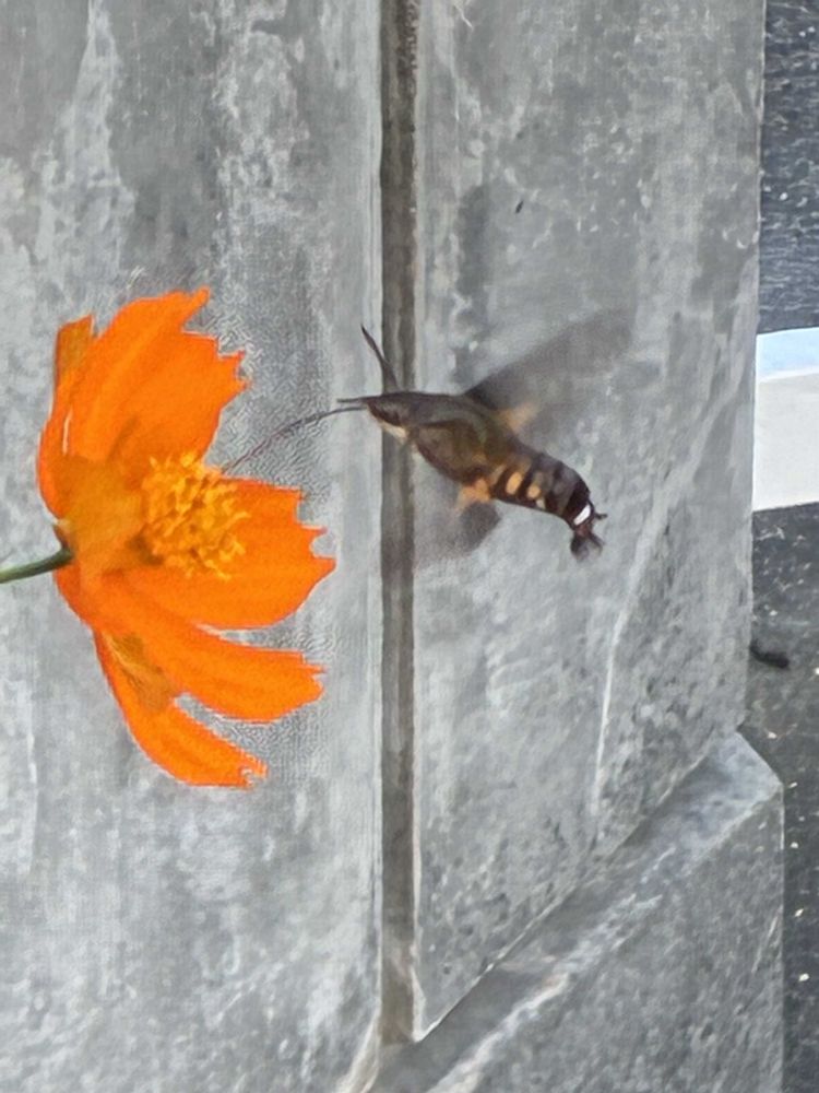あっ、ホシホウジャクさんが夕食を食べにに来ました。🦋🥤😋🌞