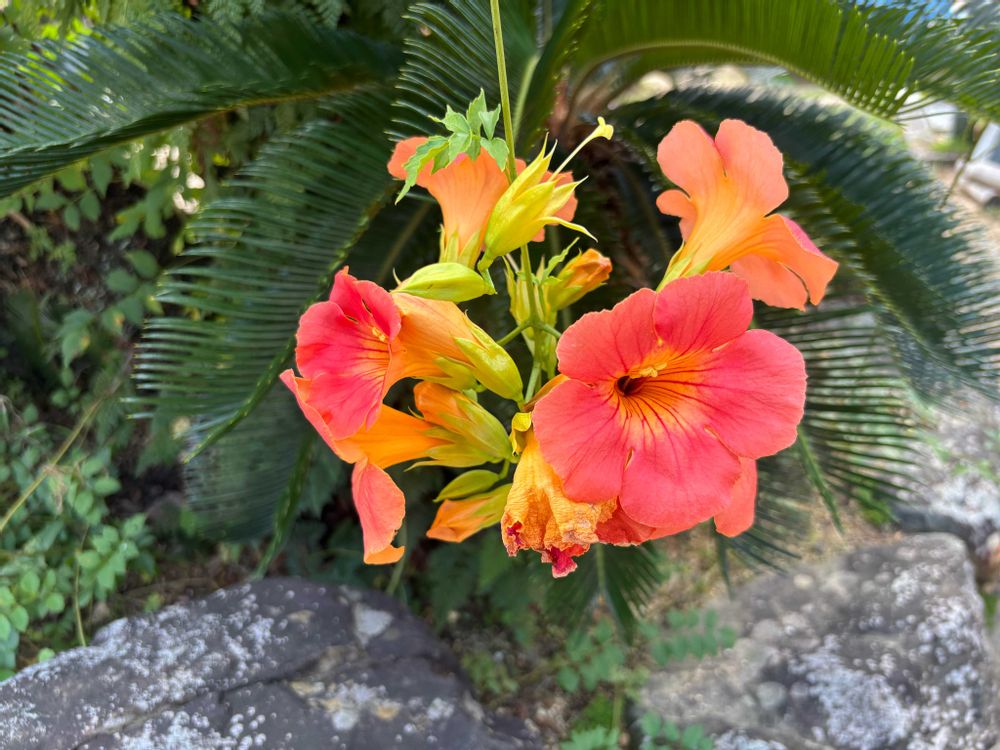 ノウゼンカズラの美し花に出会ったり、にゃんこに出会ったり。
