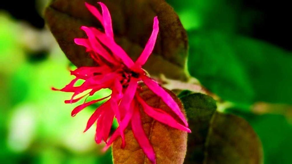 鮮やかな朱色の細い花弁の「トキワマンサク