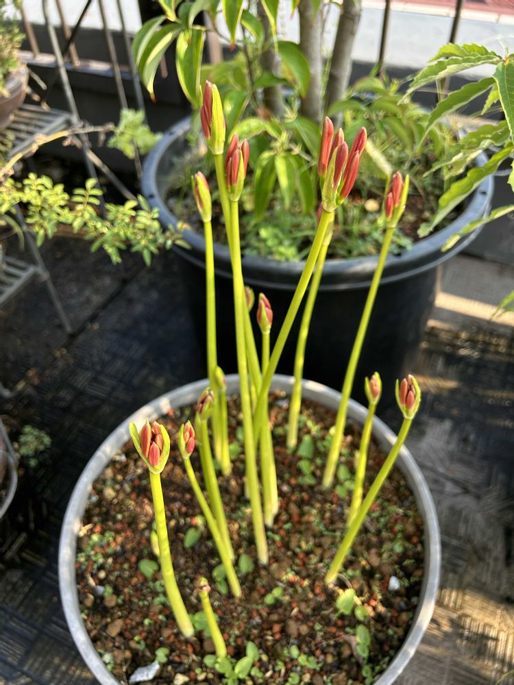 バルコニー小庭の植えっぱなしの🪴鉢。夏前に上部が枯れたら天水以外の水遣りを控え雑草だらけになります。8月末に雑草を抜いて掃除してやります。今年は彼岸にピッタリ合わせて満開です⸜❤️⸝