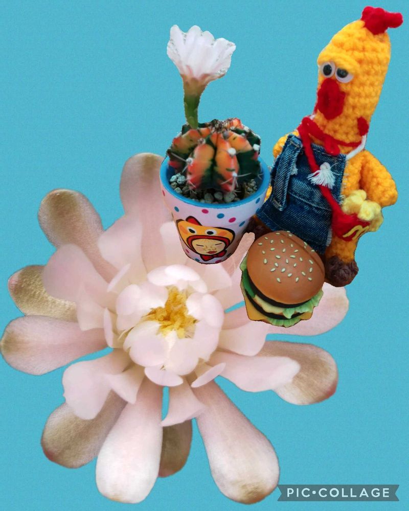 いちごちゃんに頂いた編みぐるみチキンちゃんが朝食🍔🍟食べながら眺めてる様子ꉂ🤣𐤔ꉂ🤣𐤔♬.*゚