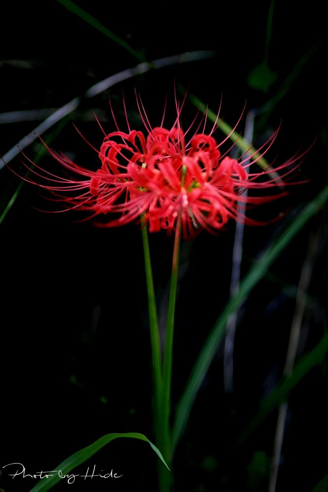 暗闇に真紅の彼岸花が映えて幻想的ですね😍