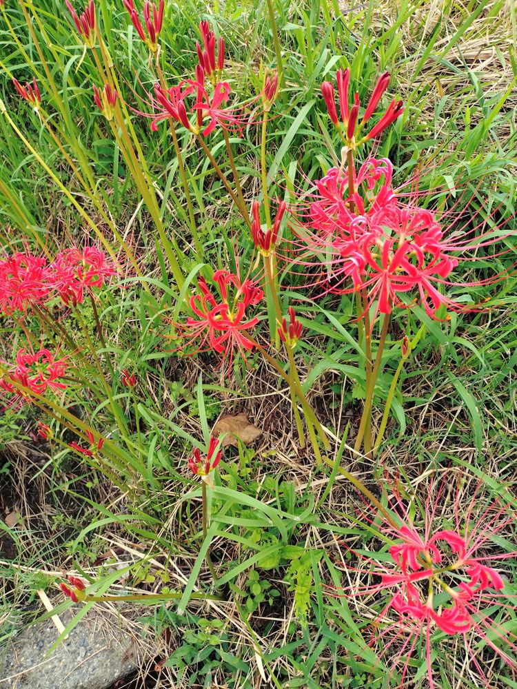 この季節になると、何処からともなくキリッ伸びて🌸をさかせる曼珠沙華、見事な光景です😃