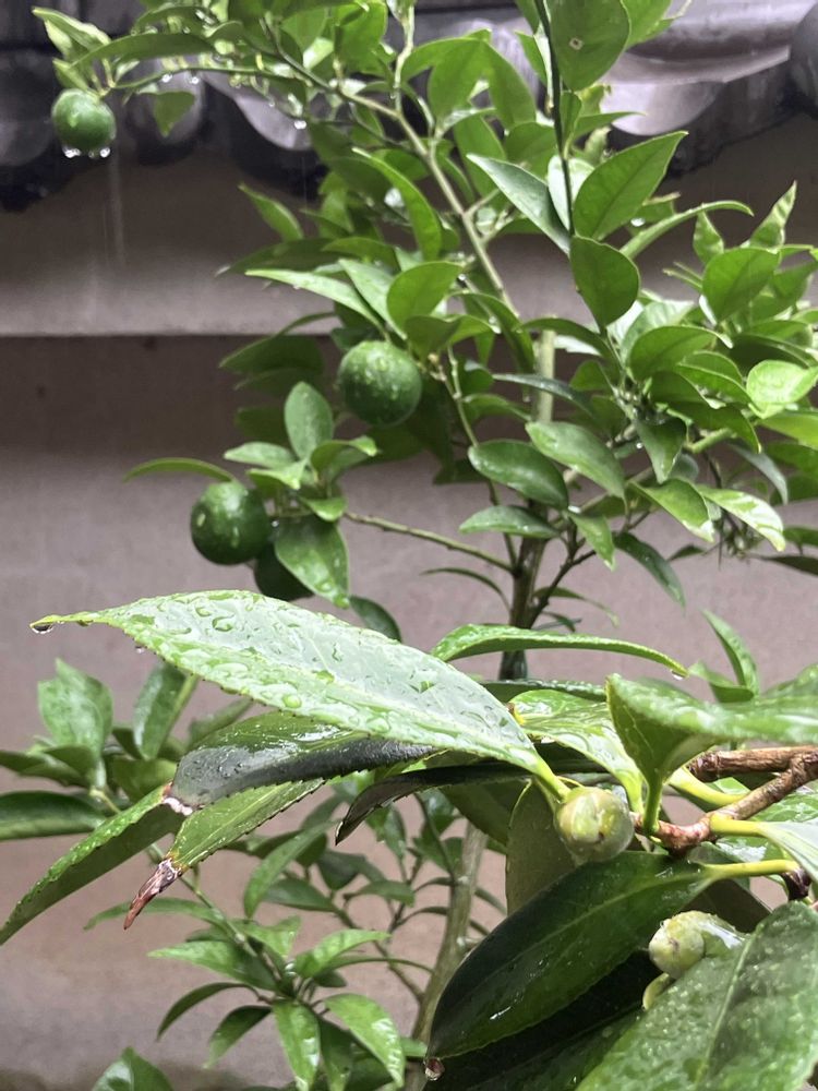 裏庭では スダチも大きくなったようで ツバキの蕾も発見