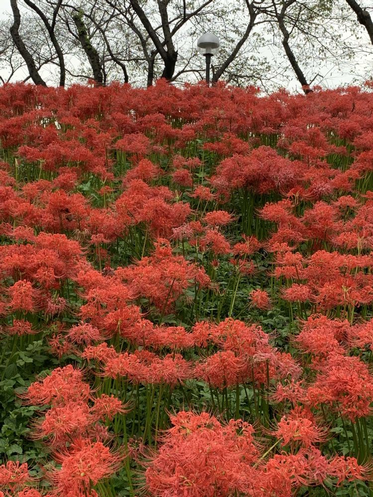幸手の権現堂の曼珠沙華は、春は桜、梅雨時は紫陽花が咲く場所に曼珠沙華の球根が植わってます。