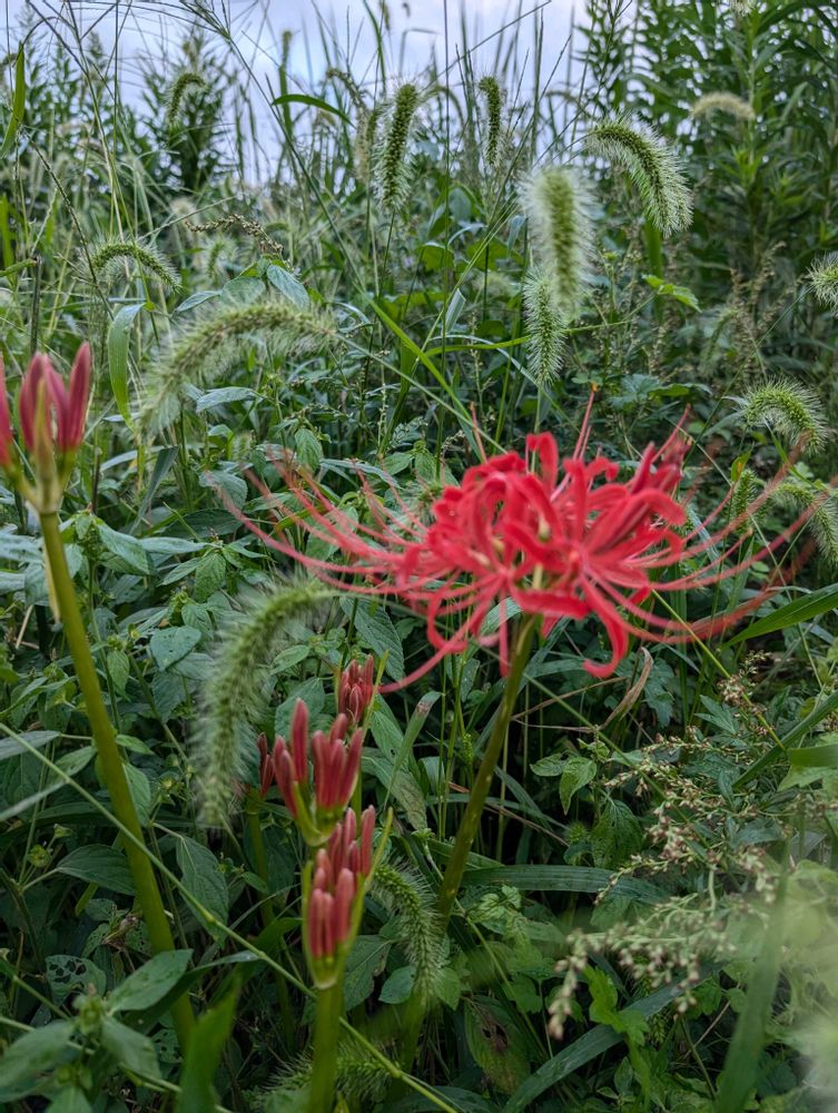 ヒガンバナの花火や野草らしいエノコログサで乾杯しましょうね🍻