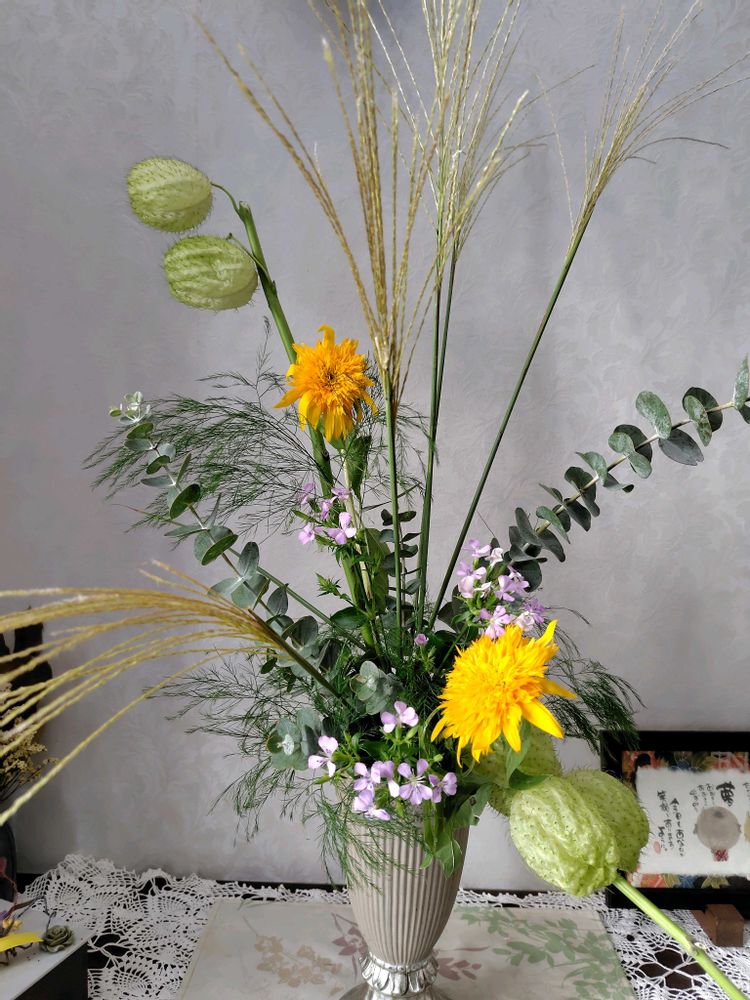 ヒマワリとススキでお月見を連想させましたね⁉️