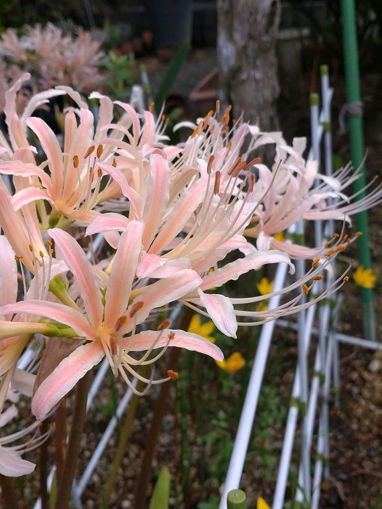 ここに背の高い《グラジオラス》があり、倒れないように繋がった支柱をしていただけなんですよ!