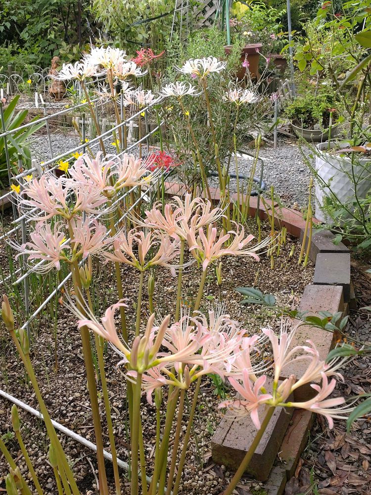 花壇の中にヒガンバナだけをキチンと囲むように管理しているんだね❣️