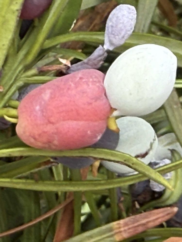 生垣や歩道脇に植えてあるのですが、イヌマキに雄木と雌木があるので両方ともあれば見られるかなぁ🎶🎶