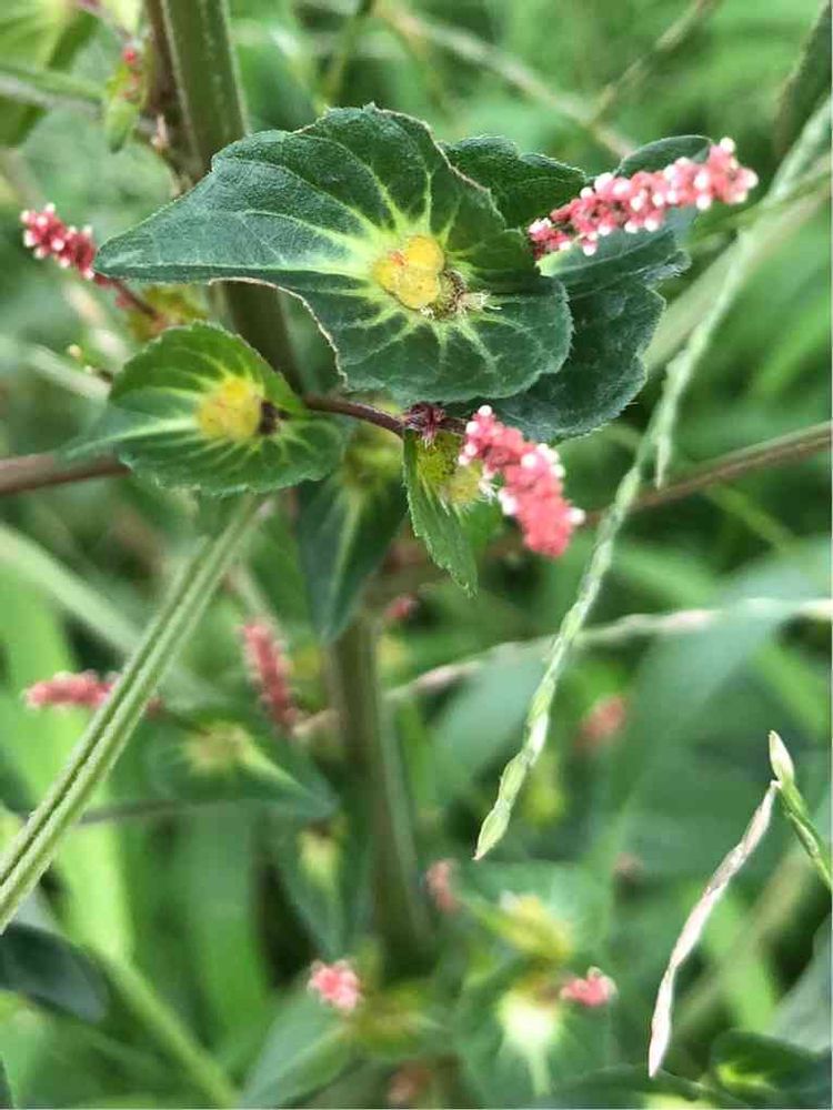 以前このピンクの雄花のてっぺんに何か花らしきものが付いていて、なにかと思っていたら葉の真ん中に雌花が付く以外に雄花のてっぺんにも雌花が付いていることがあると知りました。🌀 随分複雑な花ですね‼️( ◠‿◠ )