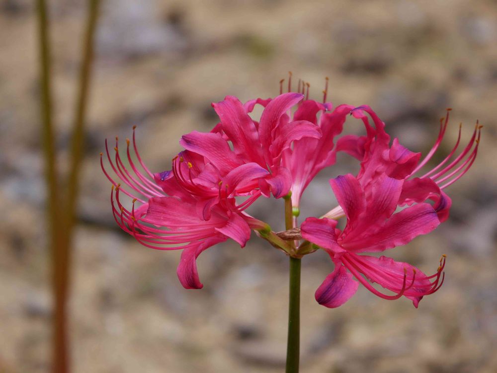 濃いピンクの彼岸花(リコリス)、紫がちょっと入っている。
