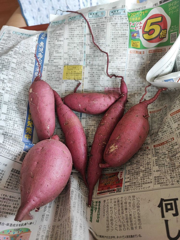 ちょうどいいサイズの芋だけ切って、他のは全て埋め戻してきました。紅はるかは収穫後1ヶ月くらいは10度~15度で熟成…そんな場所、ねーわ笑