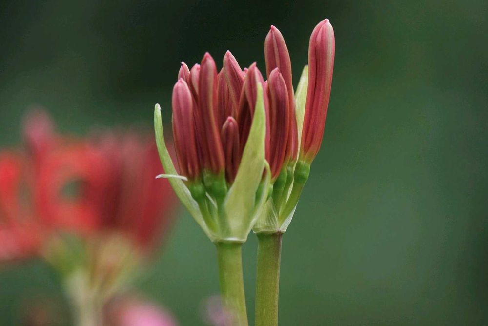 サーモンピンクのヒガンバナは未だ蕾すら