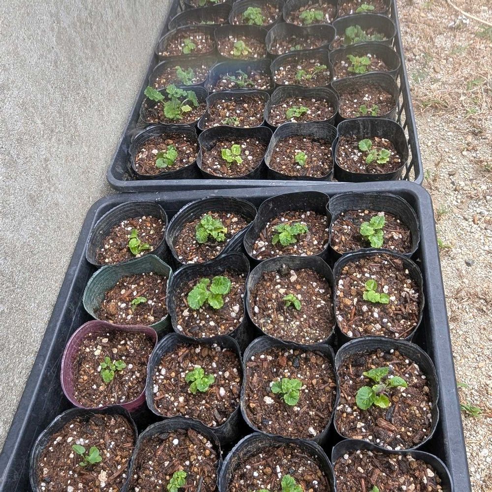夏前にポットに植えたのは全滅です😭 鉢にこぼれ種からのが残っているのを植え替えました☘️