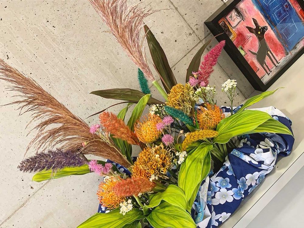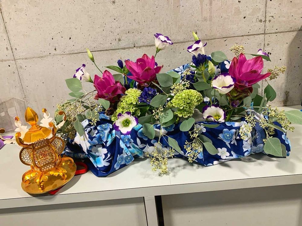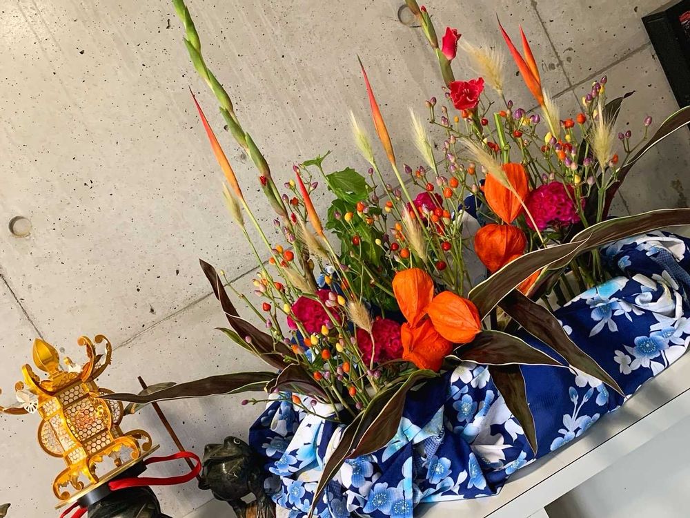 8月の生け込み この頃はちょうどお盆の時期でもあった為 少し落ち着いた色味などの花をチョイスしてみました。