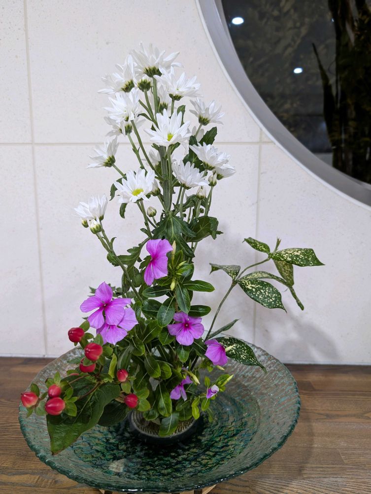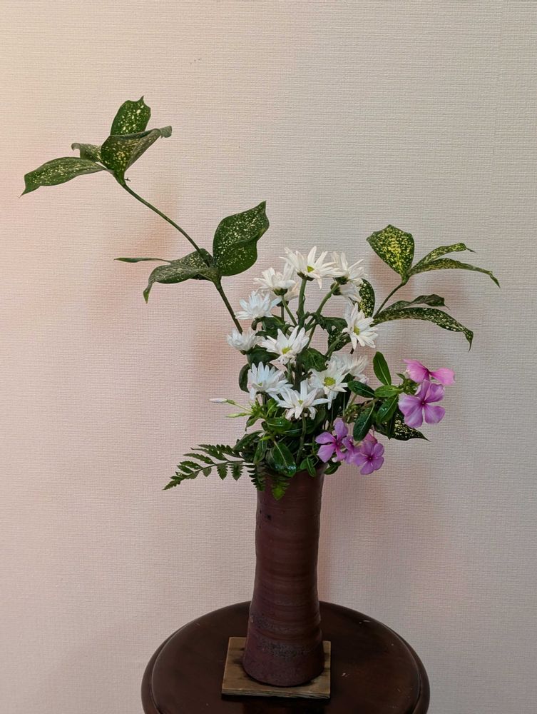 今日は、12日生け花教室にて沢山花材が残ったので持ち帰り、早々3作品活けました