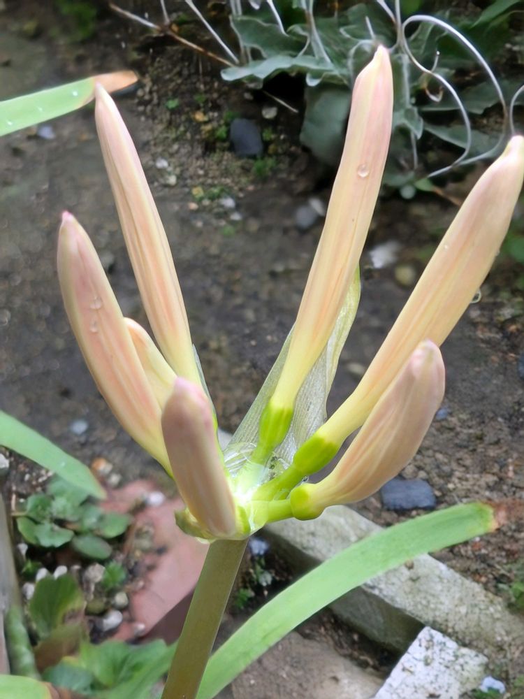 庭に30個以上の蕾がでてますが、開きかけはこのヒガンバナだけです。今年はちょっと遅いようです。