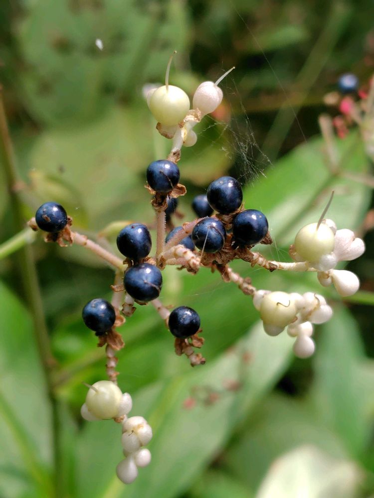 ヤブミョウガも咲き始めの白い花から艶黒の実まで沢山あって見るのも面白いけど雑木林の中はすぐに蚊が寄って来ます〜😩 顔の周りに来る虫も💦