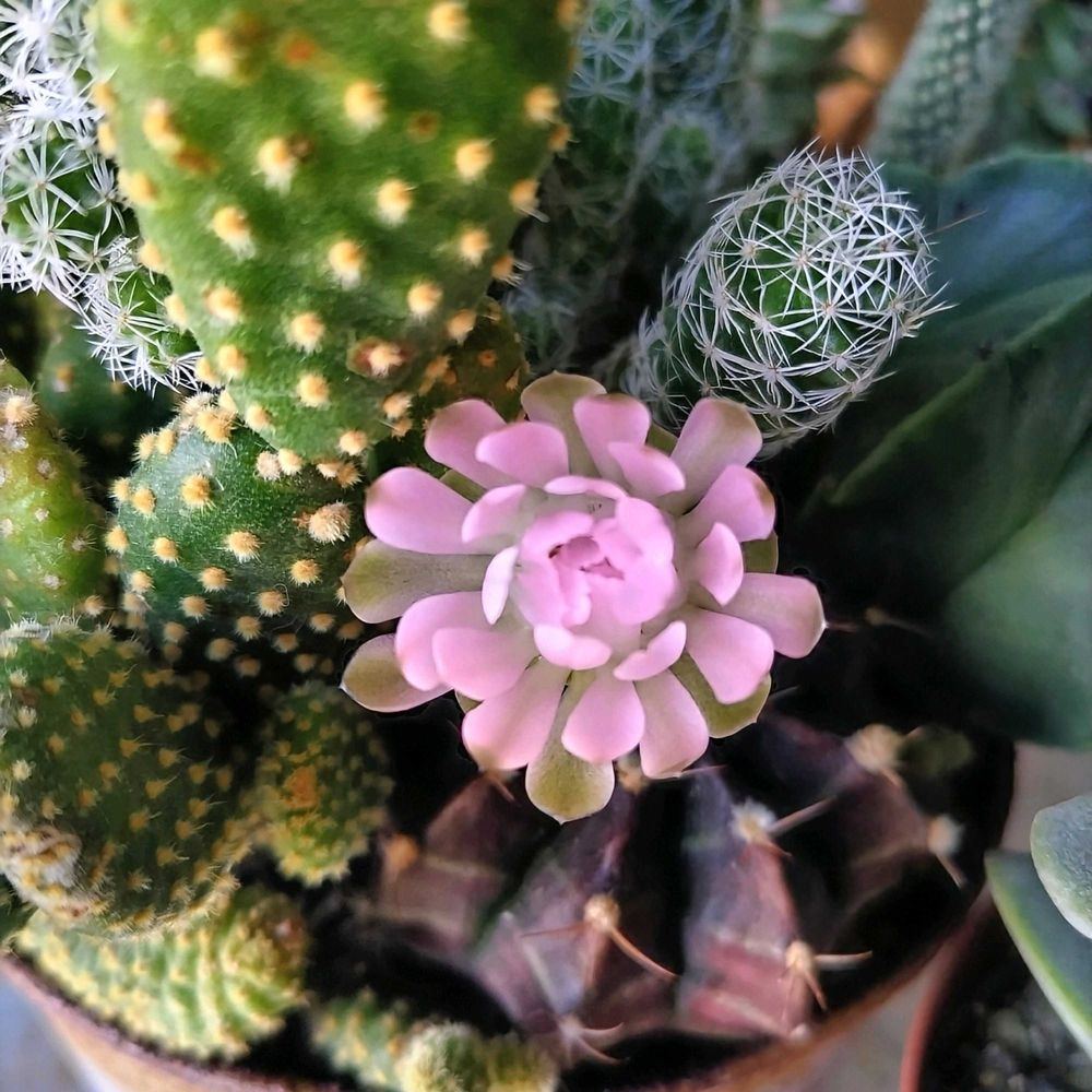 サボテンのお花、可愛いですね♥️アエオニウムみたいな感じに見えました。