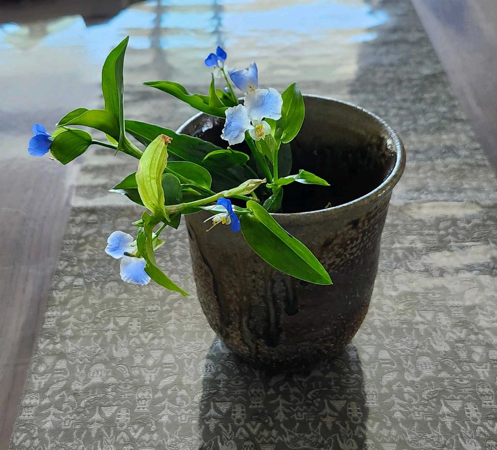 メガネツユクサのこぼれ種から、普通のツユクサまで連れて来てくれた👌🙆