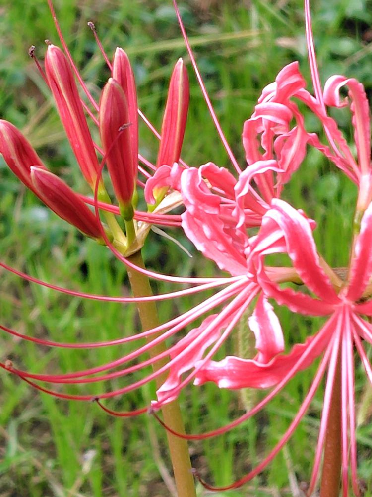 別名は曼珠沙華、カミソヒバナ、シビトバナ、トウロウバナなど