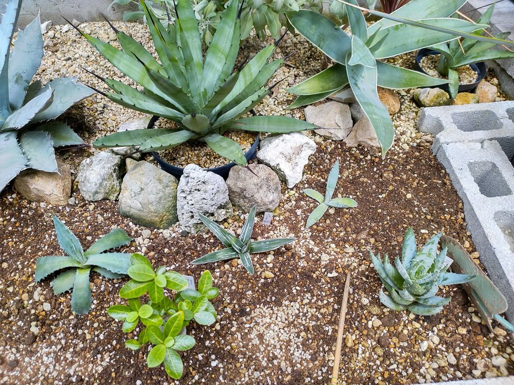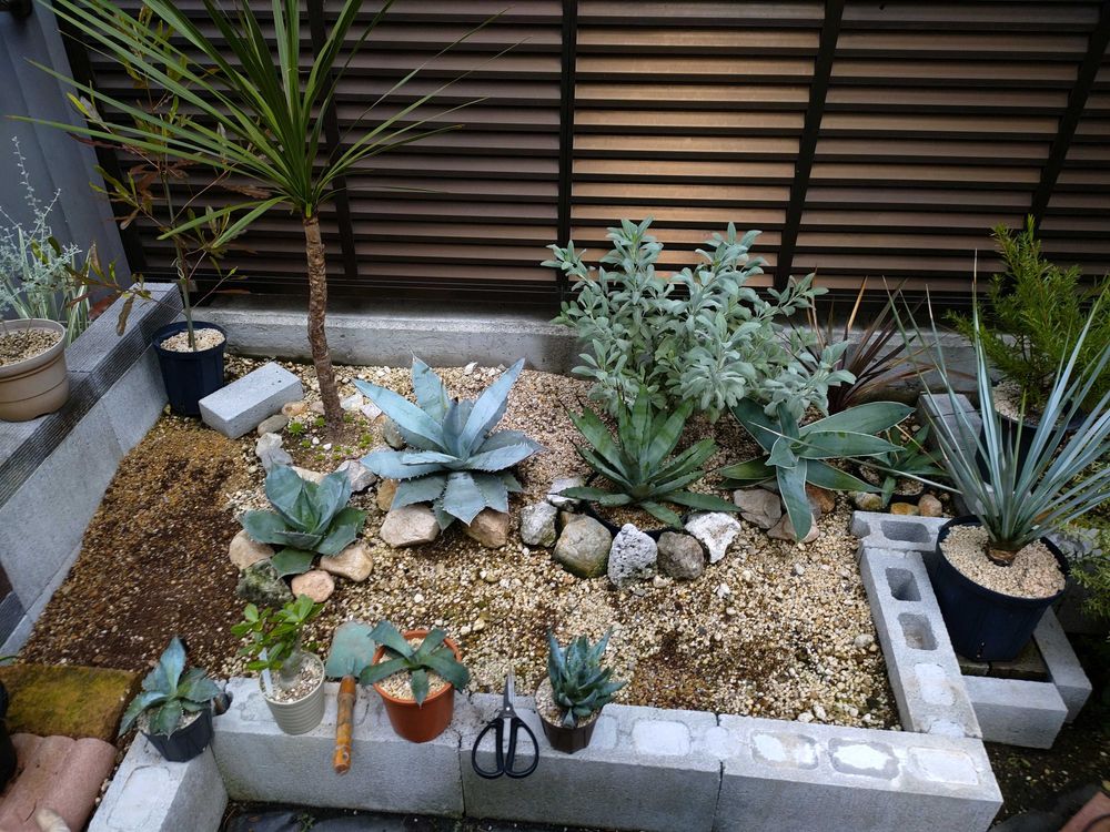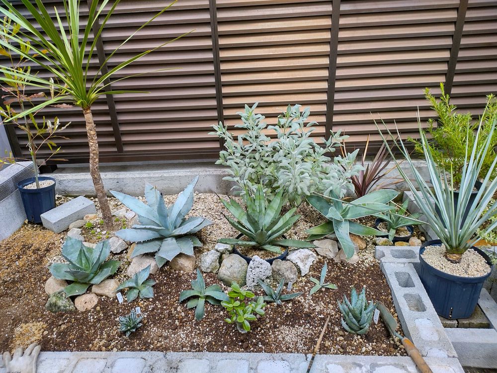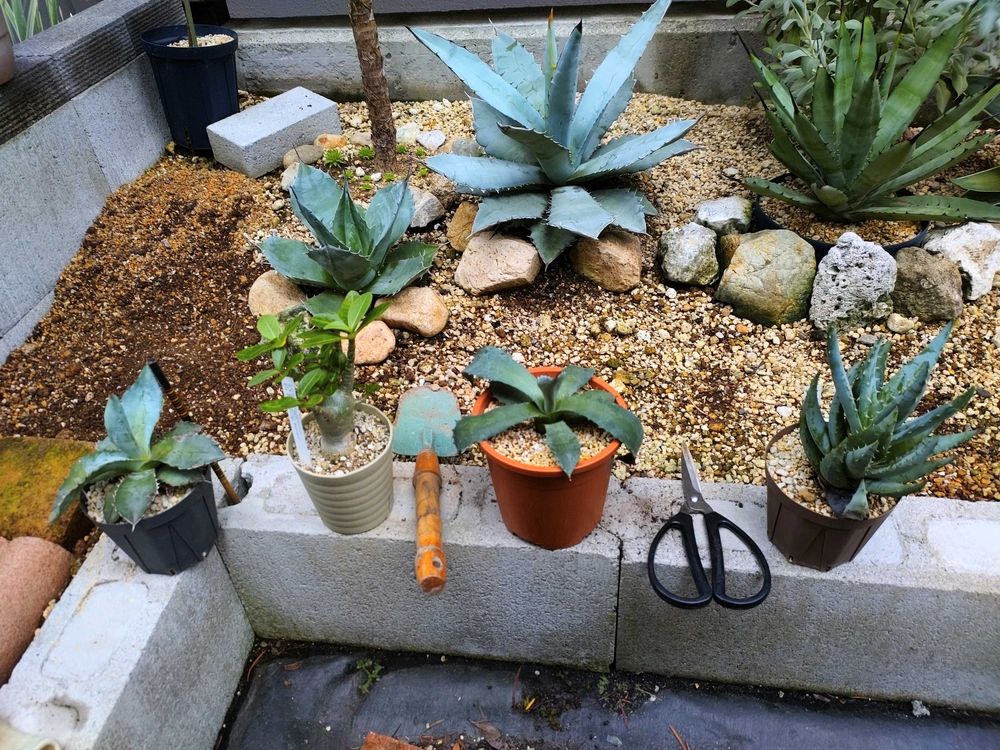 本日、ドライガーデンのブロック花壇の空いてるスペースに、アガベなどを植えました😊