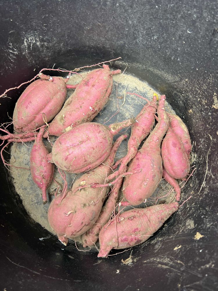 今年は、入院した事もあり夏の間ほったらかしだったので、イモはつるボケして不作でした😓