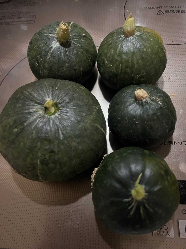 絡まっていたかぼちゃの蔓に5個実がありましたが、多分2つは未熟💦