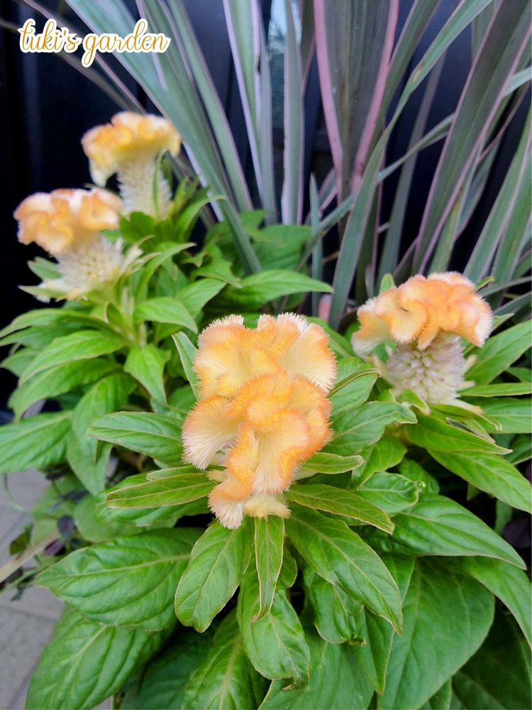 セロシア『ジュラサーモン』は、秋の深まりとともに濃いサーモン色のまあるいモフモフに姿を変えていきます🩷🧡