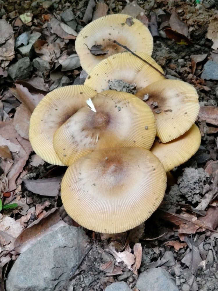 あの赤いタマゴタケの黄色バージョンみたいで傘には同じように条線が入ってます😃 出始めの幼菌は黄色ではなくて茶色でしたよ~😊