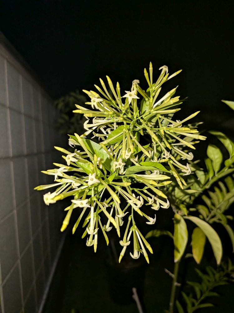 夜香木(ジュリ花)がピークを迎え毎晩甘い香りを漂わせ咲いており星型の小さい花も可愛らしいですね。そして料亭那覇や沖縄の夜道でどこからか青リンゴのような甘い香りが漂って来たらそれはきっと夜香木だと思いますよ