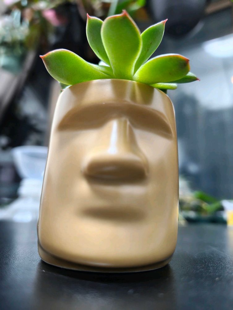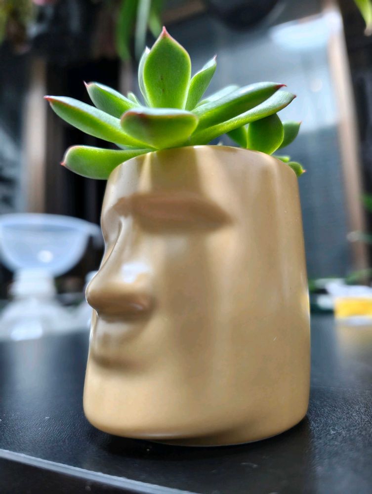 セリアの食器コーナーで見つけたモアイにエケベリアを植え込んだら想定外のイケメンになった。